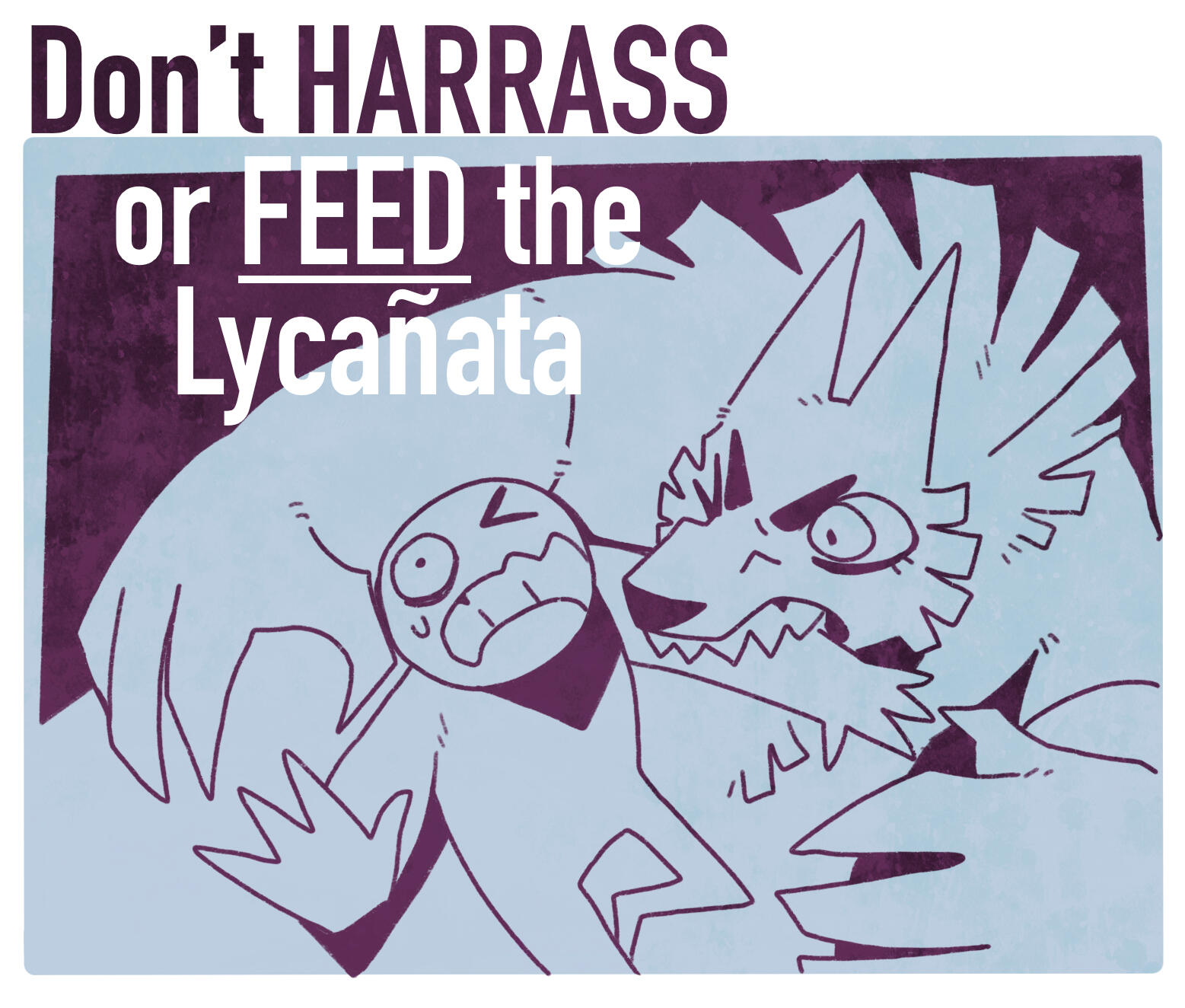Lycañata are rather harmless and do not attack humans unless provoked.While bites can happen, these monsters have a strict diet of sweets, sugary drinks and desserts. Don't get in their way.Bipedal